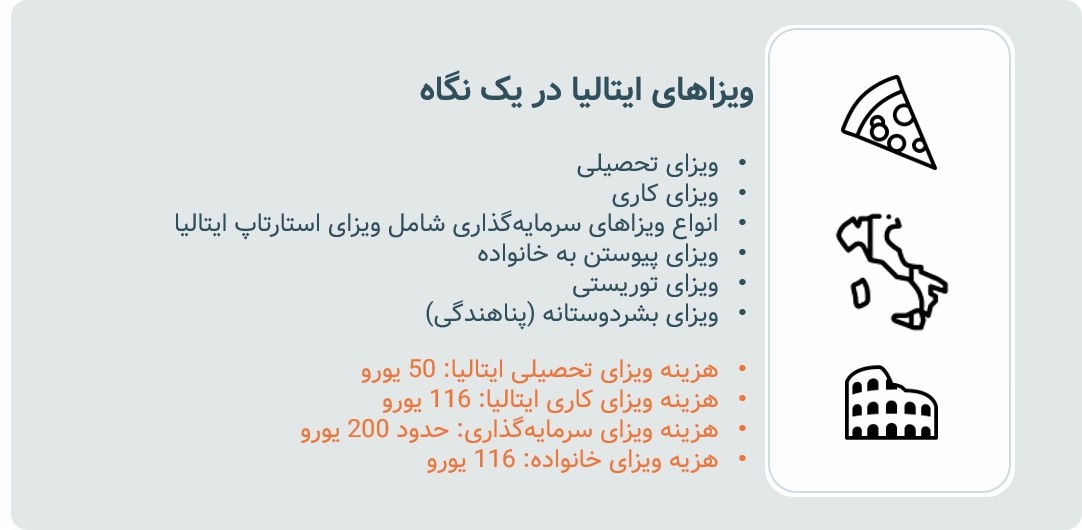- اگر مقصد شما ایتالیاست، همین امروز یک جلسه مشاوره اولیه رزرو کنید؛ در تماس تلفنی کوتاه، بپرسید: