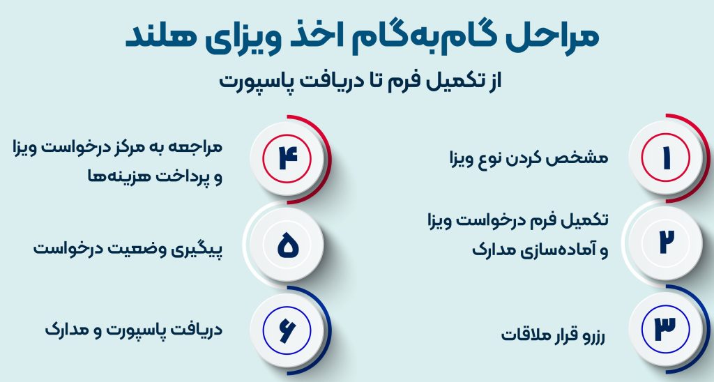(برای آخرین الزامات، به صفحه رسمی VFS هلند در ایران و وبسایت سفارت مراجعه کنید.)