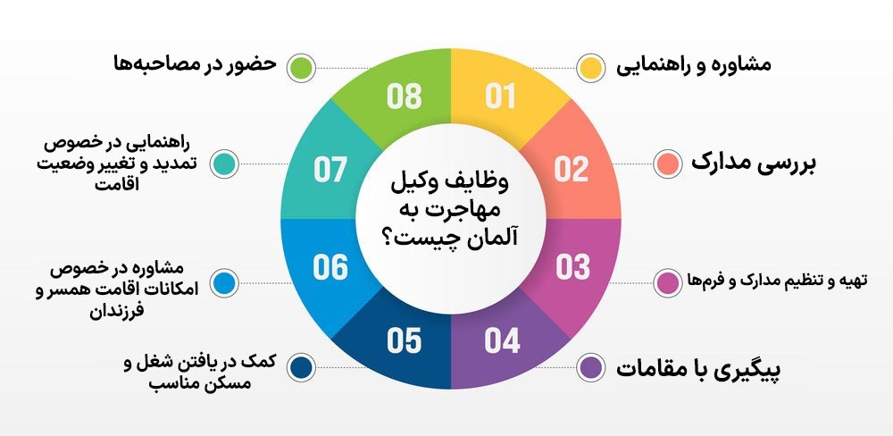 توضیح: پوشش امور مهاجرتی؛ مناسب برای بررسی مسیرهای کاری/تحصیلی آلمان.