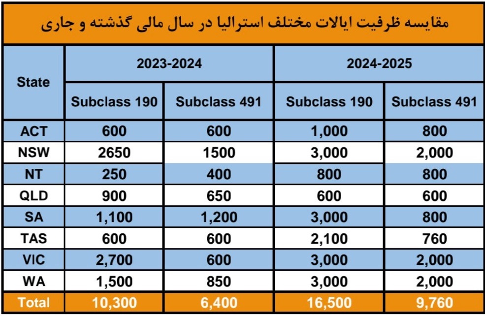 حوزهها: کاری، تحصیلی، مهارتی، سرمایهگذاری (استرالیا و سایر مقاصد)